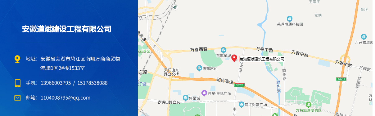 安徽道斌建設(shè)工程有限公司成立于2018年4月,主要從事工程施工、工程勞務(wù)、鋼結(jié)構(gòu)施工、市政公用施工,市政施工總承包貳級(jí)、地基基礎(chǔ)工程專業(yè)承包貳級(jí)、防水防腐保溫工程專業(yè)承包壹級(jí)、鋼結(jié)構(gòu)工程專業(yè)承包貳級(jí)、建筑裝修裝飾工程專業(yè)承包貳級(jí)、建筑工程施...